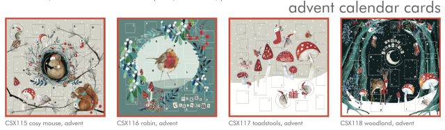Taking the fabulous Cranberry Sauce range to a whole new level! Brand new concertina cards have a beautiful watercolour illustrations both back and front, across a double fold, each with a stunning die cut details. Plus four new advent cards, each with 24 individual windows to open, revealing yet more stunning hidden artwork inside. Printed on lovely textured board, supplied wih quality envelopes. Images below also show the conncertinas opened out - the back illustrations will differ from the fronts. Each car has a blank space to write a personal message.