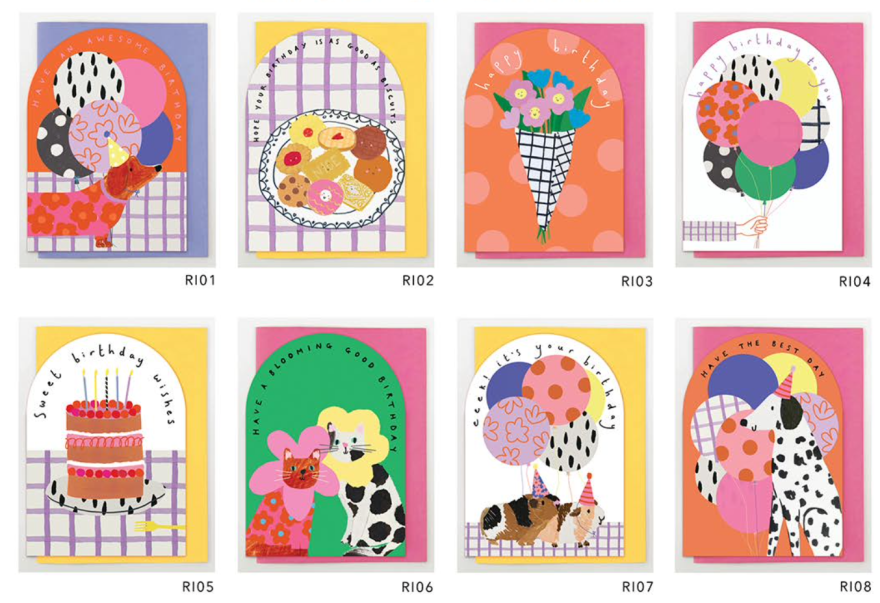 This bright new range is perfect for going into Spring/Summer and has a curved die-cut top edge and matching bright coloured envelopes.